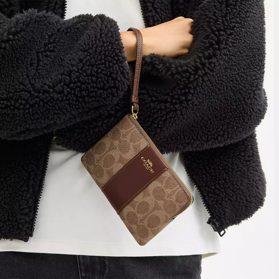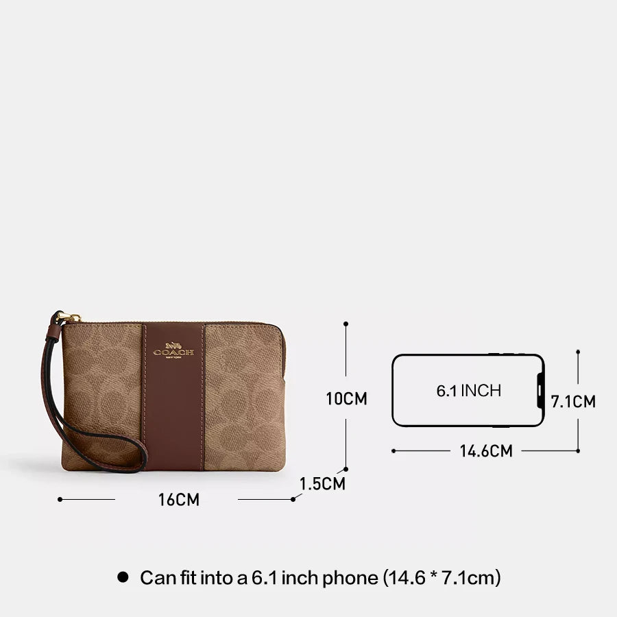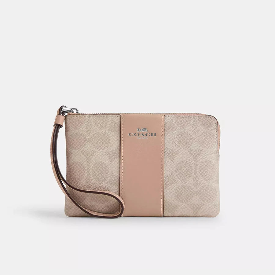 Corner Zip Wallet Wristlet Bag In Signature Canvas With Stripe,CW854